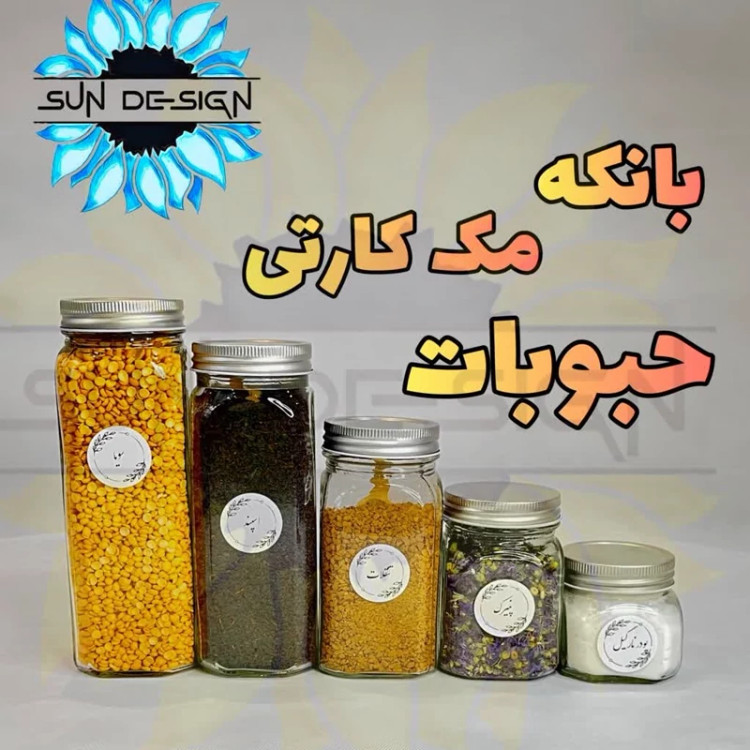 شیشه حبوبات مک کارتی با دهانه 6 سانت و ارتفاع 22 سانت (سایز 5)حجم 1000 گرمی به همراه برچسب ضدآب حبوبات که با هیچ نوع شوینده ای چاپشون تغییر نمیکنه.