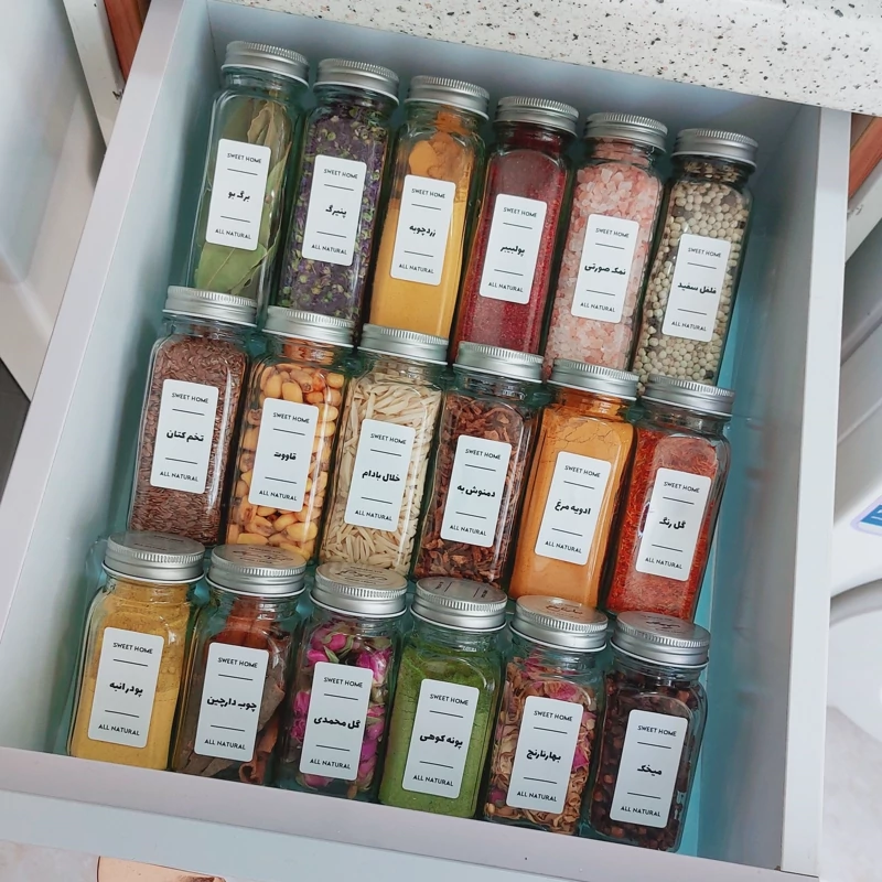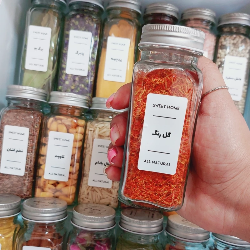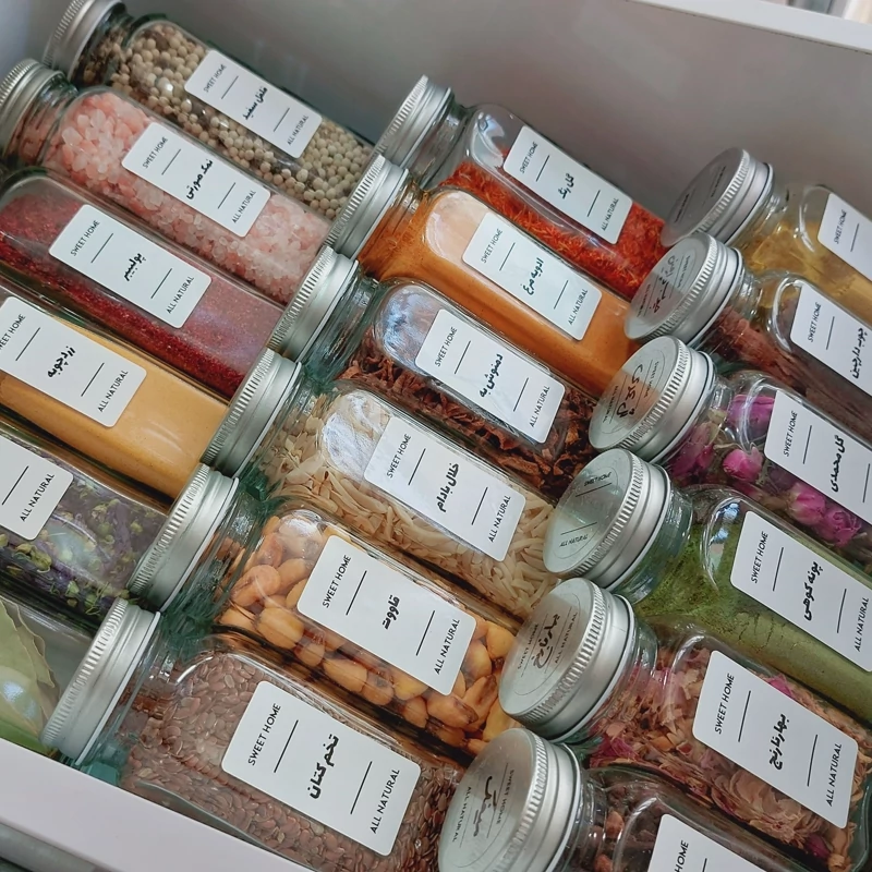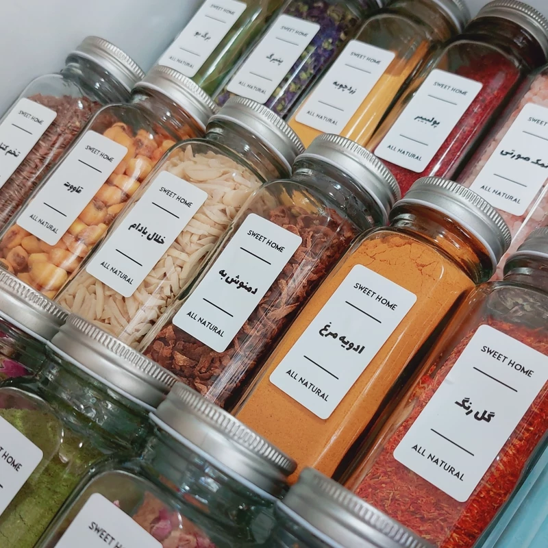 🔰همچنین شما میتونید از ما برچسب خام تهیه کنید و خودتون اسم ادویه هاتون رو روی برچسب ها بنویسید.