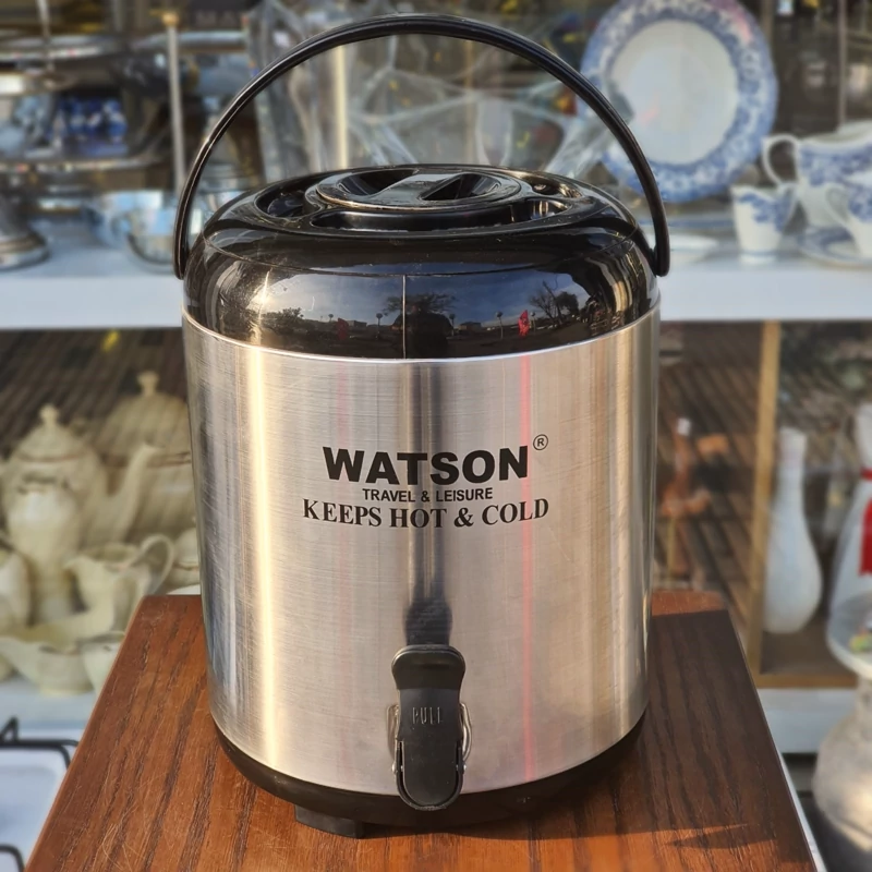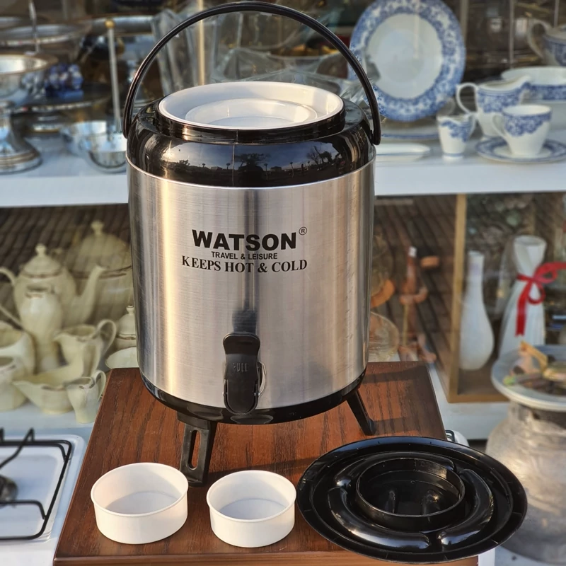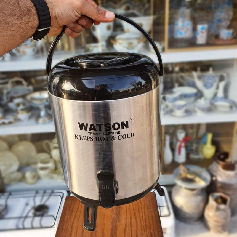 🔻کلمن آب واتسون که قابلیت نگهداری آب سرد و گرم را در فصل های مختلف دارد تولید شده از بهترین مواد اولیه می باشد که این امر جهت طول عمر بهداشت و کیفیت محصول بسیار حائز اهمیت می باشد کلمن های آب واتسون با سایز های مختلف انتخاب مناسبی جهت استفاده در منزل مسافرت پارک ها و گردش روزانه میباشد. جنس بدنه استیل جنس داخل مخزن استیل استیل ضد زنگ و ضدلکدارای پایه های تاشومناسب برای نگهداری آب گرم و سردرنگ درب و پایه ها مشکیدر حجم های متنوع