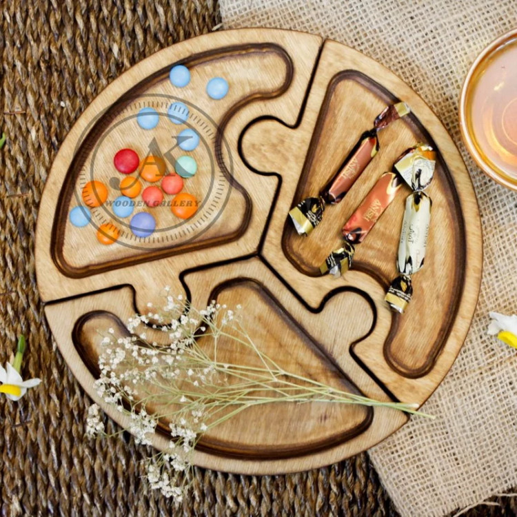ظرف چوبی 3 خانه طرح پازلی اردو خوری چوبی درجه یک قابل شستشو