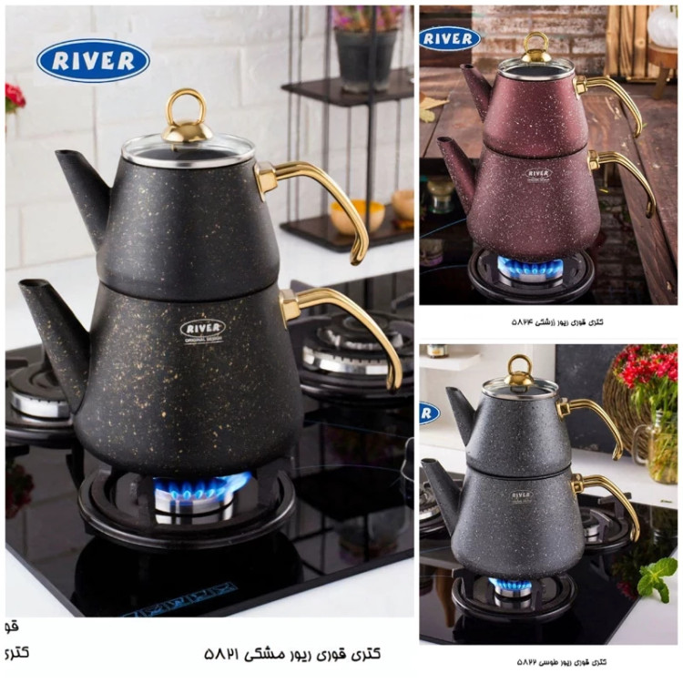 ⭕️کتری و قوری ریور الومینیومی روکش گرانیت رنگبندی2/2 لیتر(پس کرایه)
