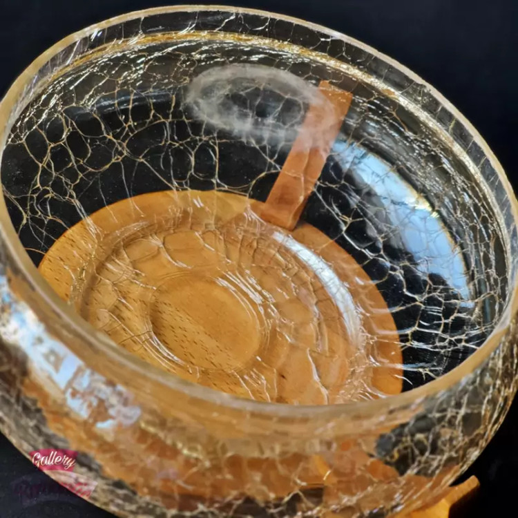در واقع با این کار موجب افزایش استحکام ظروف شیشه ای آبگزکاری شده خواهند شد. سپس آن را برای آخرین بار از کوره در می آورند و این بار به آن اجازه می دهند تا به آرامی خنک شود. با این کار ترک های بسیار ریزی بر روی ظرف شیشه ای به وجود می آید که بسیار زیبا و جذاب است.