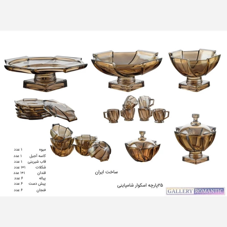 سرویس پذیرایی کریستال اسکوئر شامپاینی 12 نفره 45 پارچه(پس کرایه)