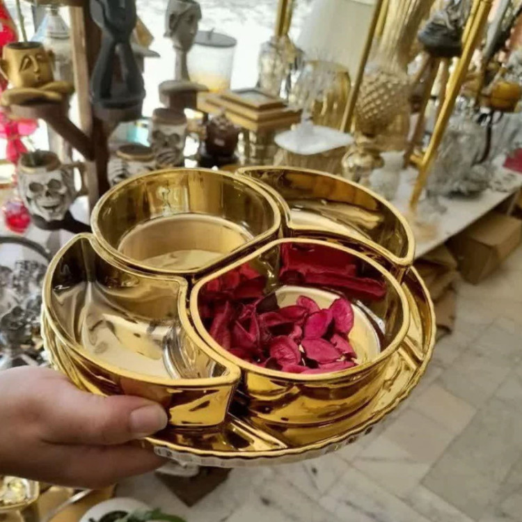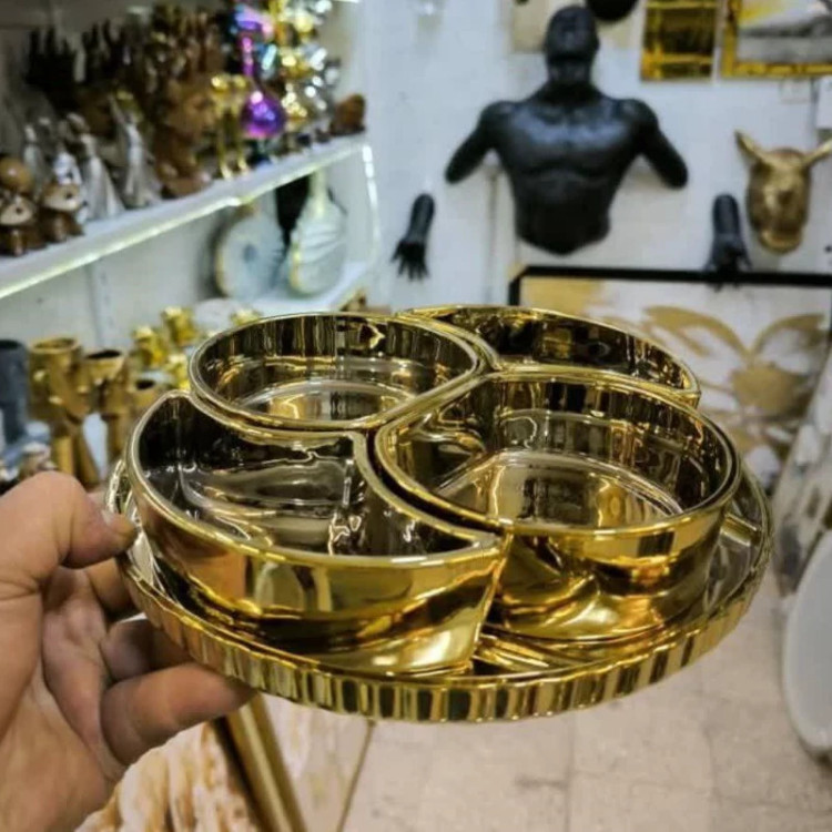 اردو خوری پنج پارچه لاوین ظرف پذیرایی طلایی