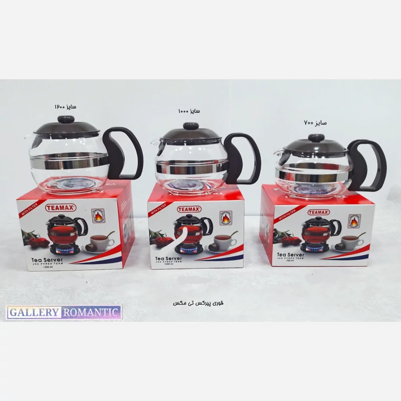 🔻قوری عضوی جدا نشدنی از هر آشپزخانه است.قوری teamax دارای حجم 700-1000-1200 میلی لیتر و شیشه ی پیرکس ساخت اروپا بسیار باکیفیت(شفاف) و شعله مستقیم است که مناسب کتری٬چایساز٬سماور و غیره میباشد.در جلوی در محصول فیلتر برای جلوگیری از عبور تفاله ها وجود دارد. قطر قسمت بر آمده ی کف (قسمتی که روی صفحه چایساز)قرار میگیرد .در و دسته ساخته شده از پلاستیک با کیفیت بهداشتی است.