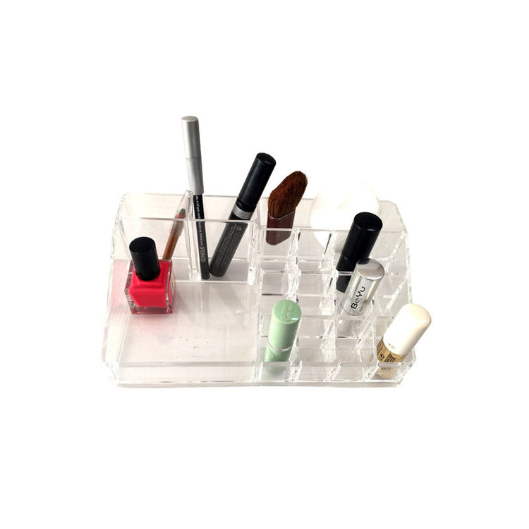 -جنس اکریلیک کاملا شفاف و مرغوب - دارای ۱۲ محفظه مناسب برای قرار دادن رژ لب و لاک - دارای ۴ محفظه بلند برای قرار دادن مداد و لوسیون و سایر لوازم آرایش - دارای یک صفحه با ارتفاع کمتر در جلوی استند برای قرار دادن سایه، پنکیک و …