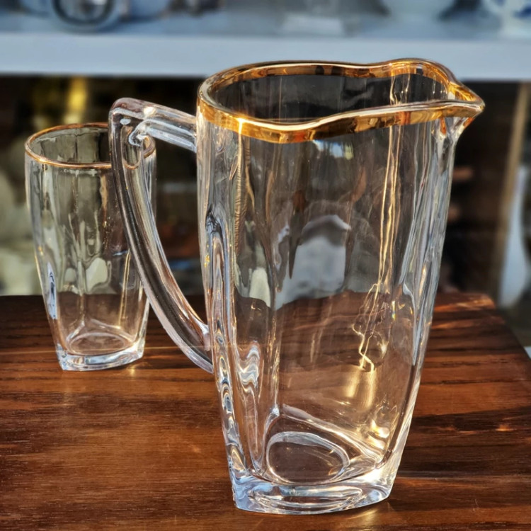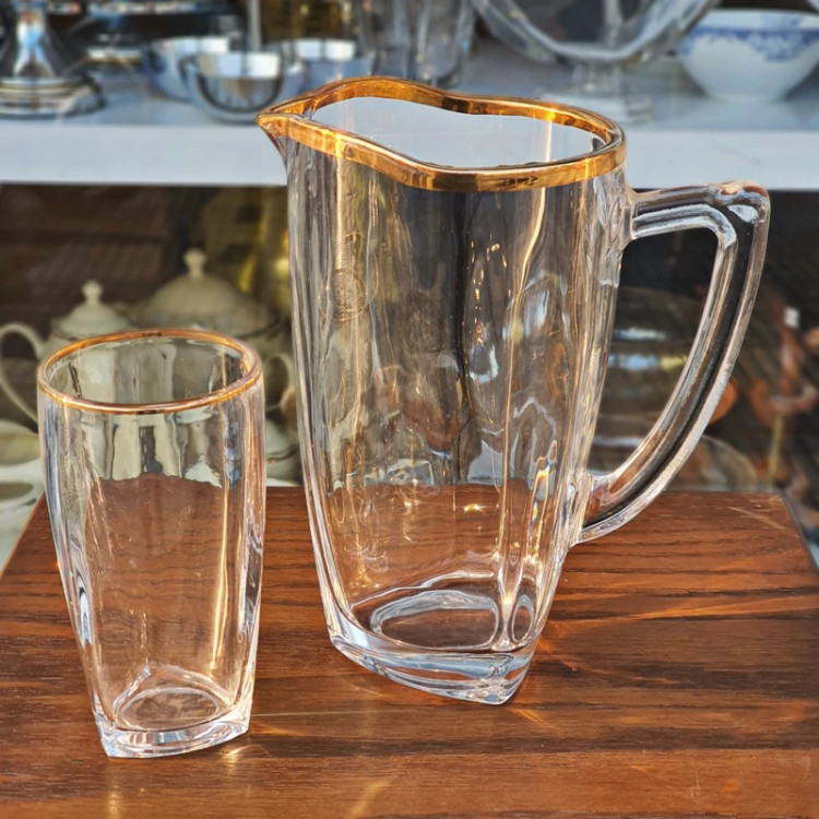 پارچ و لیوان کریستال ونا لب طلا 6 عددی(پس کرایه)