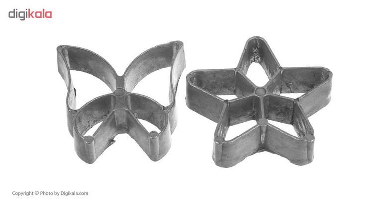 - مناسب برای درست کردن شیرینی پنجرهای - ابعاد قالبها - پروانه: طول 6.5، عرض 4.5، ارتفاع 2 سانتیمتر - دایره: قطر 6.5، ارتفاع 2 سانتیمتر - ستاره: طول 7.5، عرض 7.5، ارتفاع 2 سانتیمتر - گل: طول 6.5، عرض 6.5، ارتفاع 2 سانتیمتر