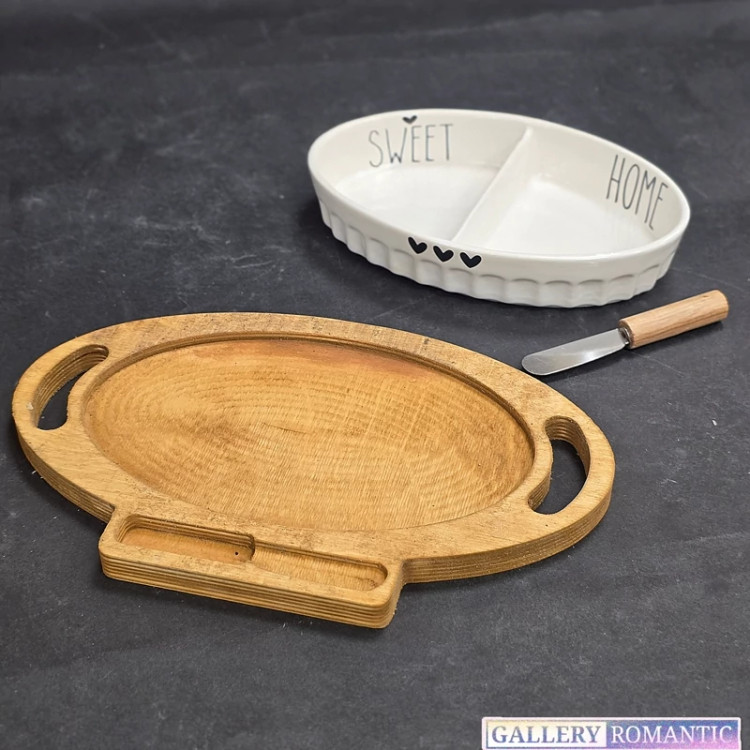 مزه خوری-اردو خوری چوب و سرامیکی با کارد و زیر چوبی الیز(پس کرایه)