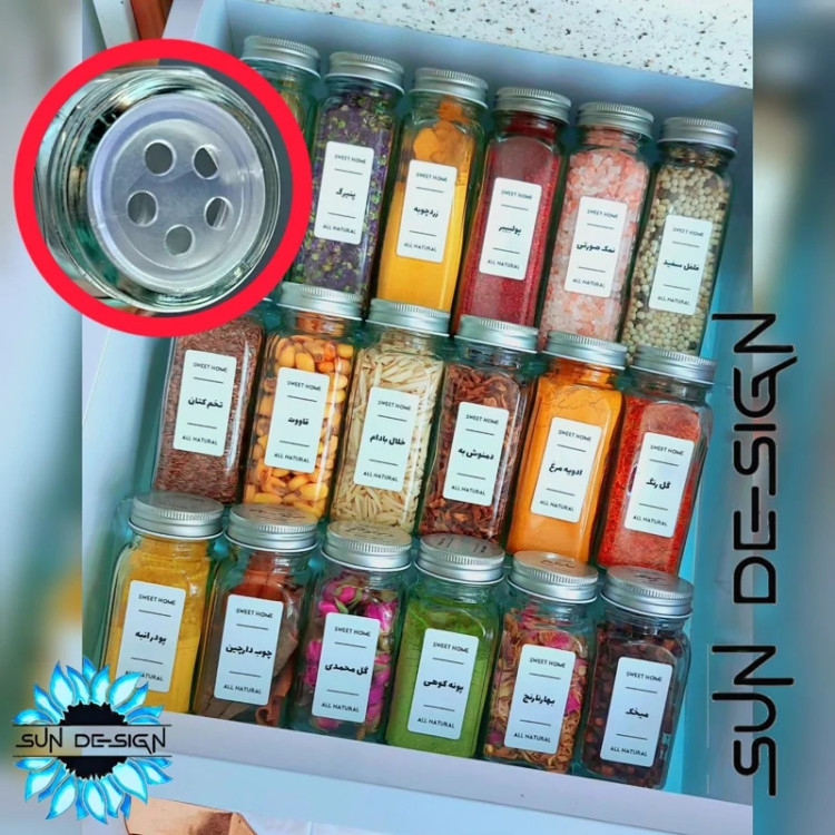 پک 18 عددی ادویه پاش مک کارتی در سه سایز (10-12-14)و سه استند کشویی و برچسب ضدآب(به همراه سری ادویه پاش)