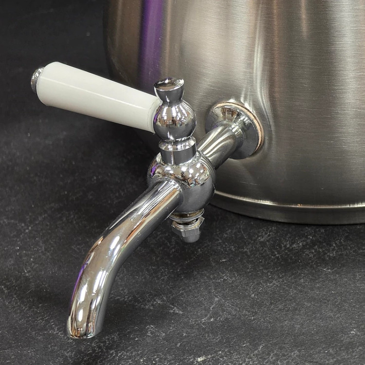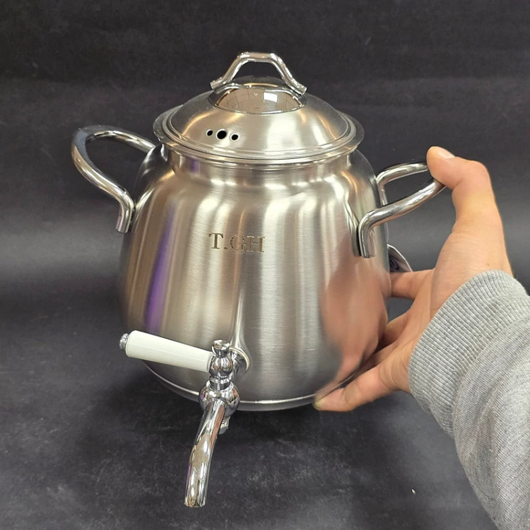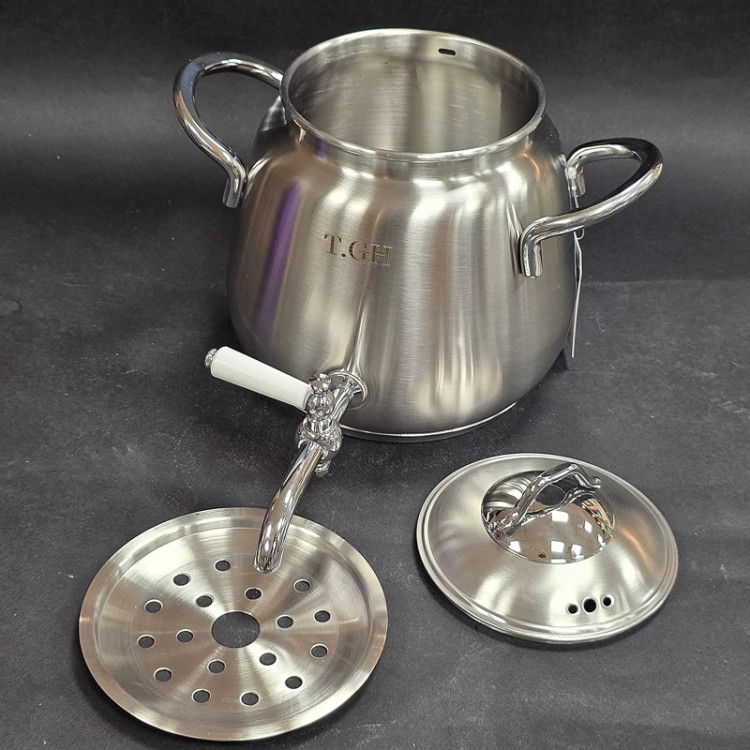 🔻قیطاسی یا T.GH یکی از برترین تولید کنندگان کتری و قوری در کشور عزیزمان ایران محسوب میشود، یکی از پر فروشترین محصول این شرکت کتری شیردار 3.5 لیتری کف چدن مدل 4004 میباشد، بدنه این کتری از استیل ضد زنگ مات تولید شده است که به دلیل ضخامت مناسب از کیفیت بالایی برخوردار است، کف این کتری دارای چدن 5 لایه میباشد که در برابر ضربه و بدون آب ماندن کتری مقاومت بالایی دارد، دسته این محصول کاملا فلزی بوده و از استحکام بالایی برخوردار است، این محصول دارای دو درب میباشد (یکی مخصوص قرار دادن قوری، دیگری درب مخصوص کتری).