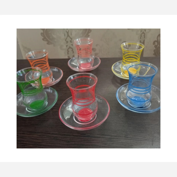 استکان و نعلبکی خطی رنگی پاشا باغچه ترک