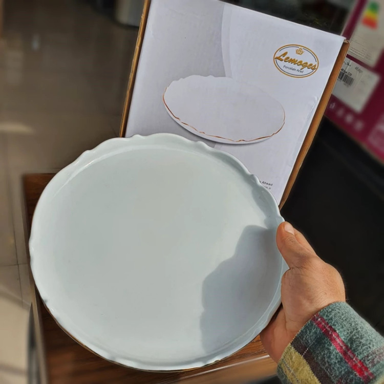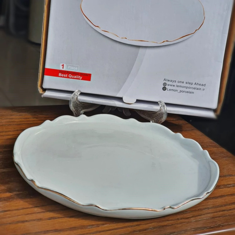 دیس گرد سفید لبه طلای موج lemon کوچکs313(پس کرایه)