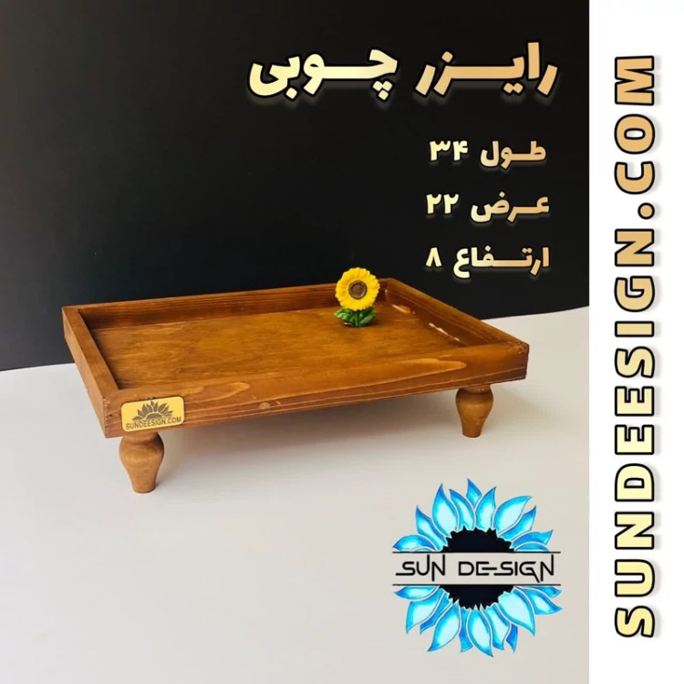 رایزر رومیزی چوب به ابعاد : طول 34 عرض 22 و ارتفاع 8 سانت