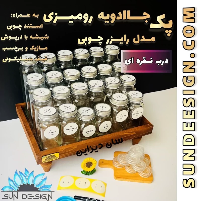 هدیه ویژه همراه پک نظم دهنده ادویه : دو سری برچسب ضدآب ، یک عدد قیف سیلیکونی و ماژیک ضدآب