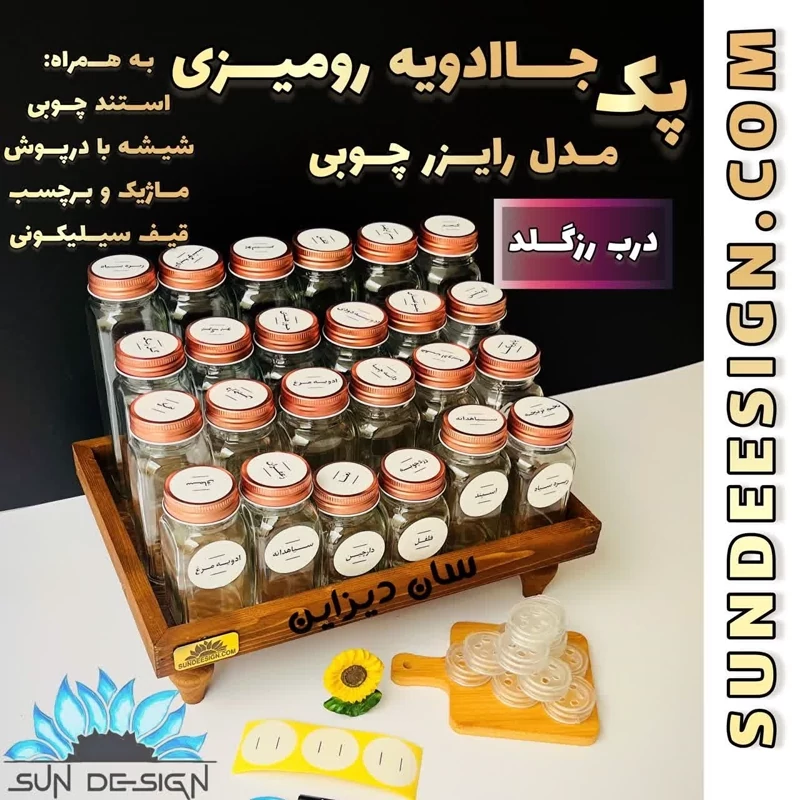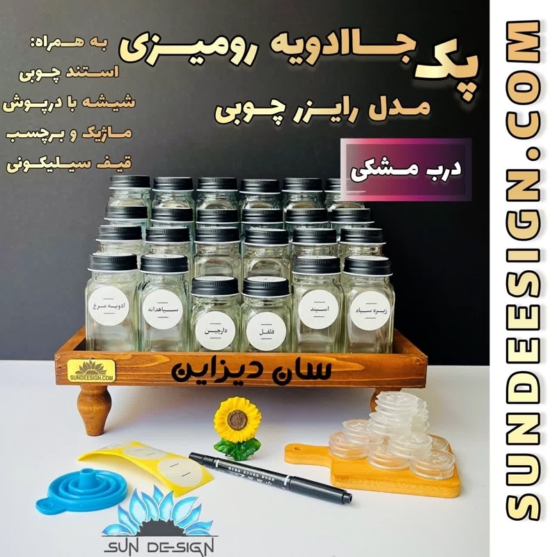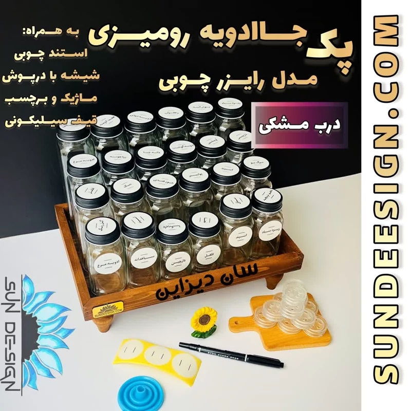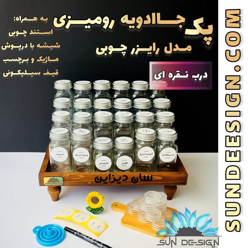 هدیه ویژه همراه پک نظم دهنده ادویه : دو سری برچسب ضدآب ، یک عدد قیف سیلیکونی و ماژیک ضدآب