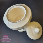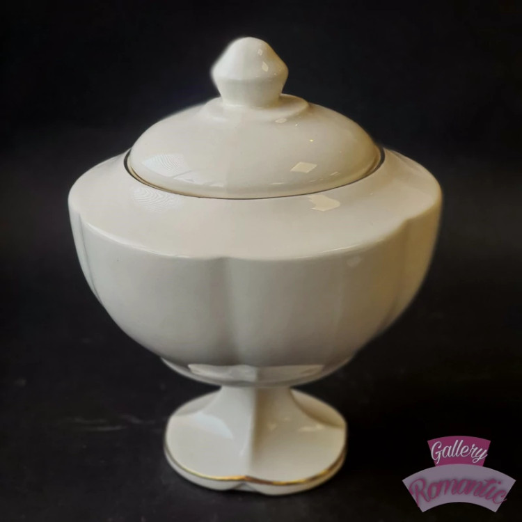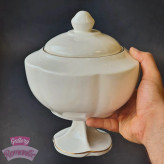 ⭕️شکلات خوری پایه دار با درب چینی سرامیک لبه طلایی valentinie مدل پاک والن(پس کرایه)