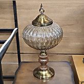 شکلات خوری درب دار انتیک شیشه ای.پایه طرح چوب