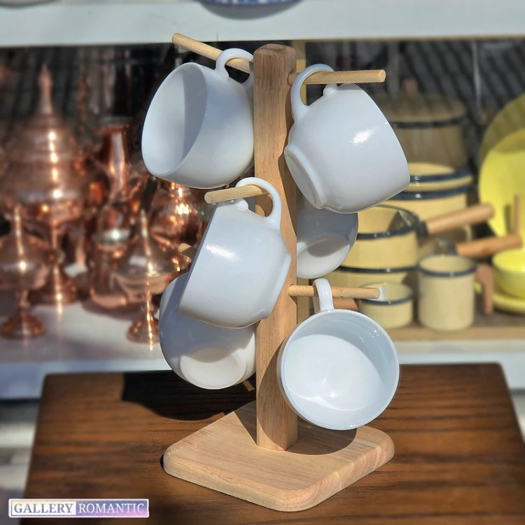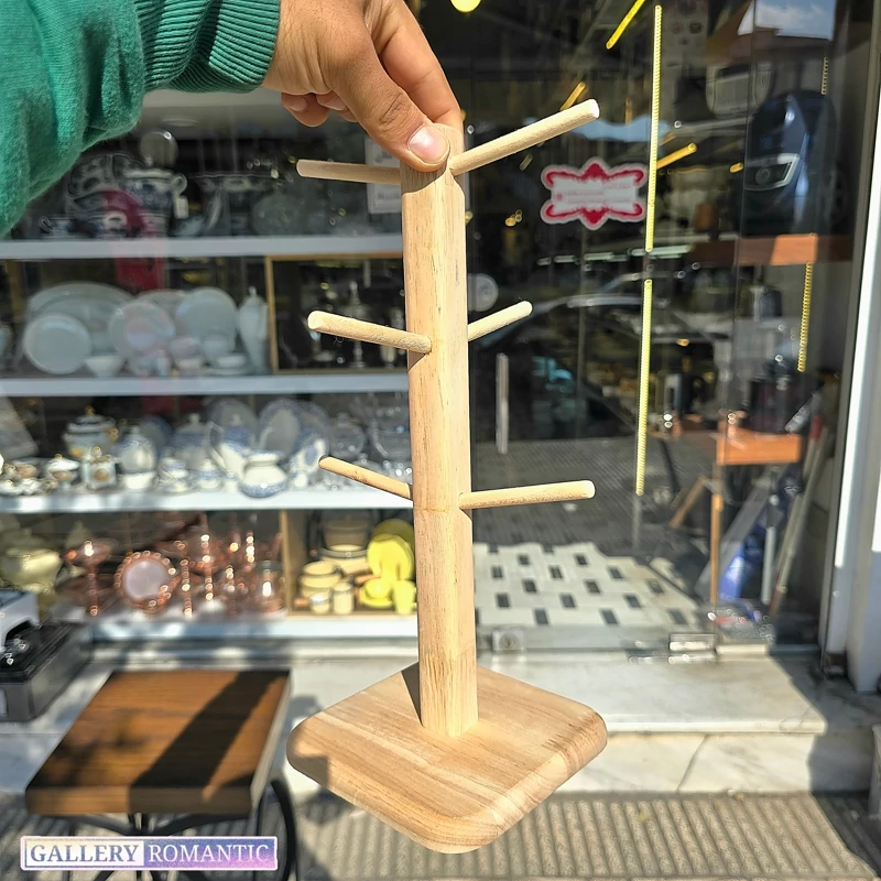 استند اویز چوبی فنجان و لیوان 6 شاخه(پس کرایه)