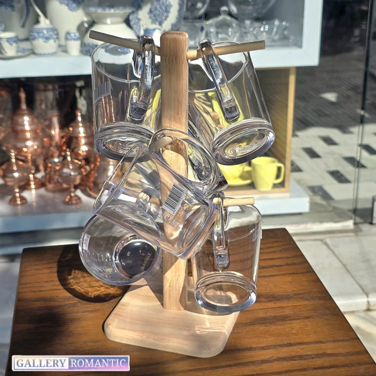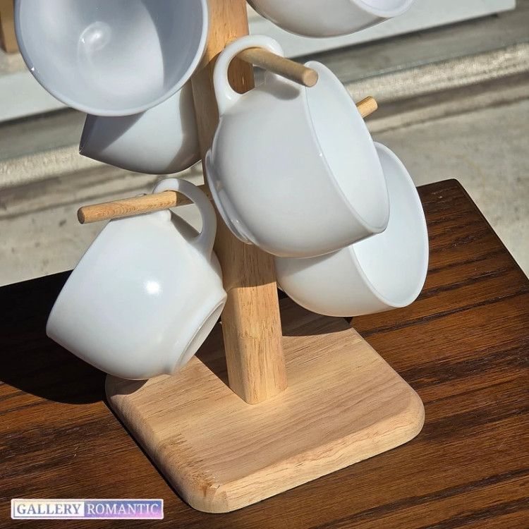 ⭕️استند اویز چوبی فنجان و لیوان 6 شاخه(پس کرایه)