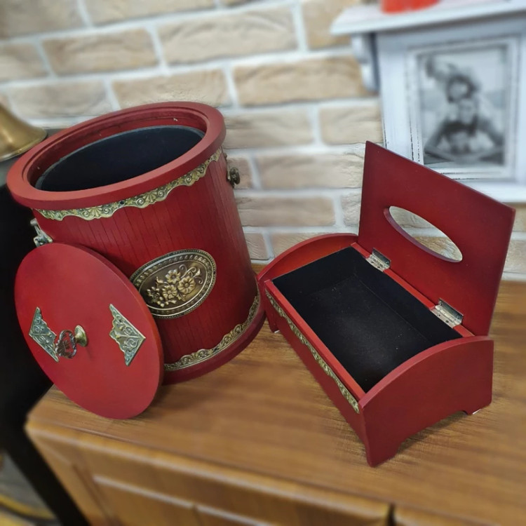 سطل زباله و جای دستمال چوبی ارتمیس (پس کرایه)