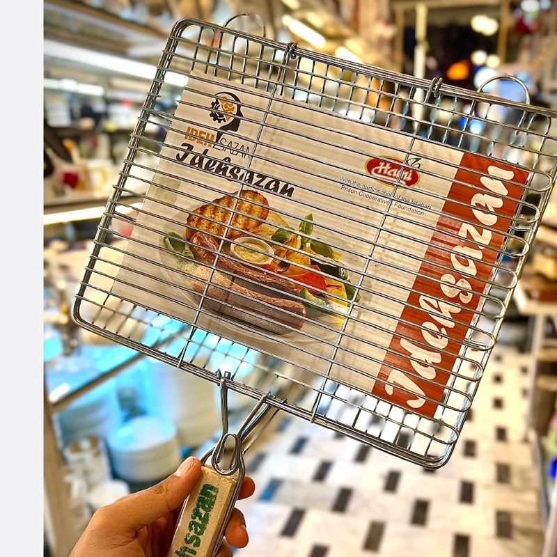 ⭕️توری کباب دوطرفه قفل دار استیل ایده سازان 25 در 20 (پس کرایه)