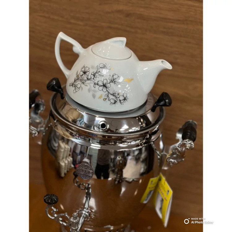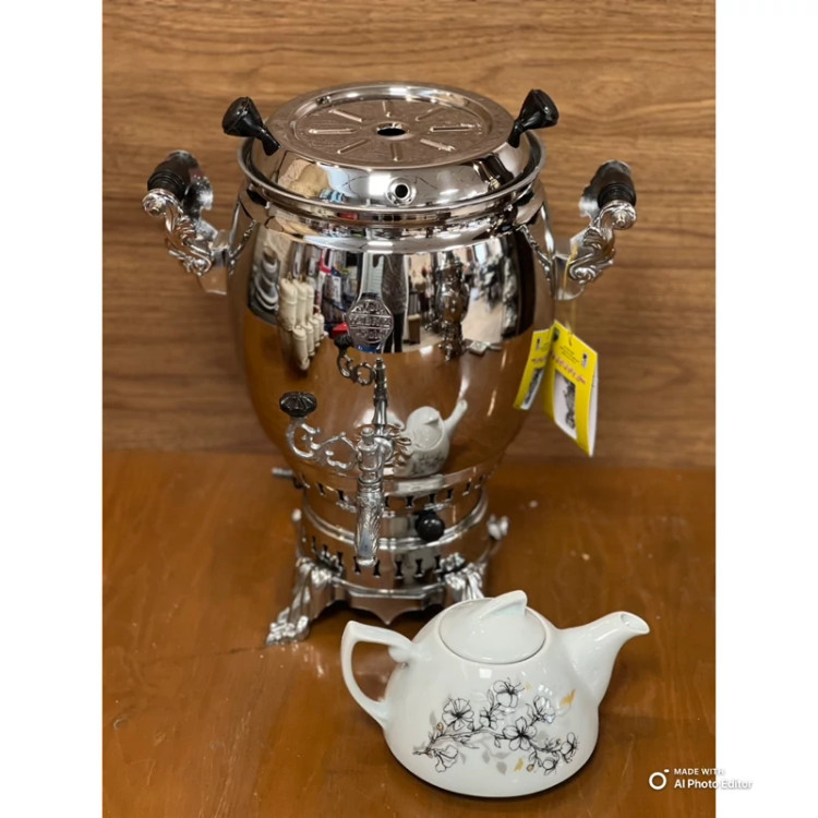 سماور سه کاره برادران ایران نژاد 6 لیتر با قوری ترموکوبل دار مدل هخامنش (پس کرایه)