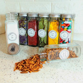 پک 6 عددی شیشه ادویه پاش مک کارتی 12 سانتی و یک عدد استند کشویی به همراه برچسب نظم دهنده ضدآب هدیه