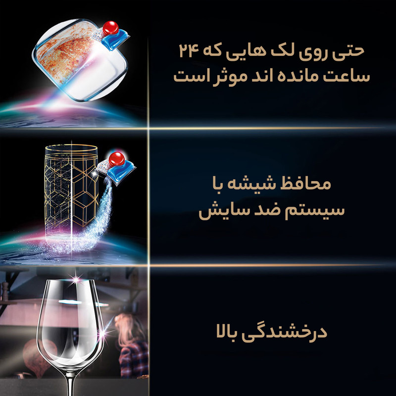 امکانات و ویژگیهای شوینده: تمیز کنندگی , براق کنندگی , چربی زدایی , جلوگیری از رسوبات آهکی