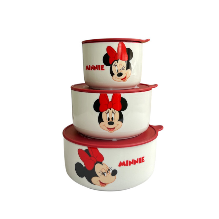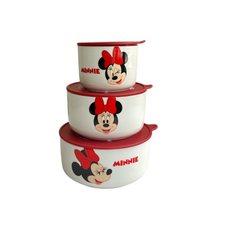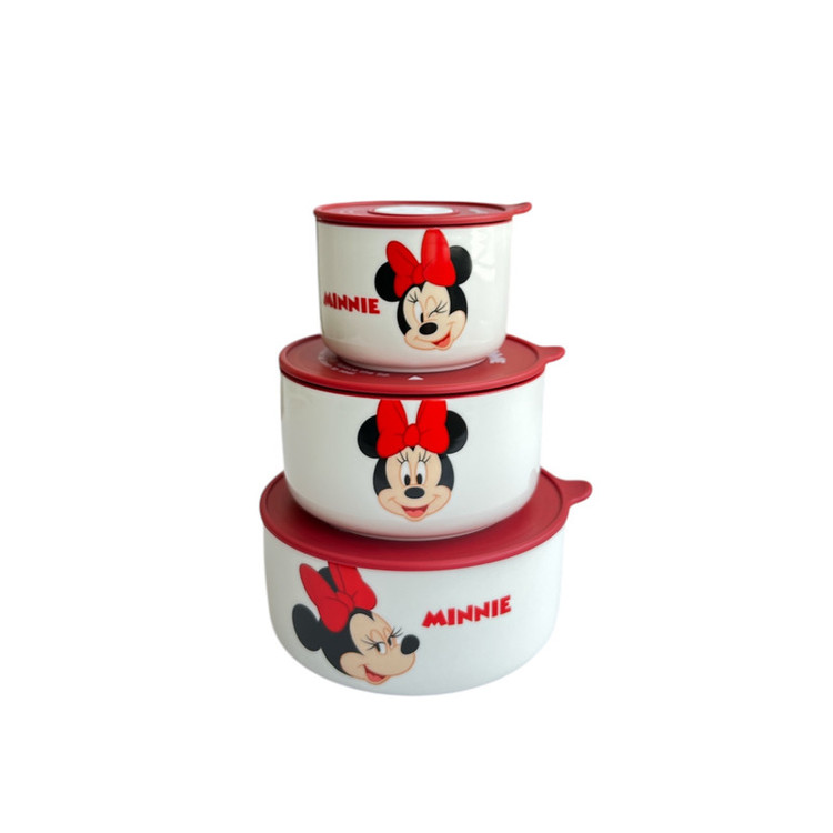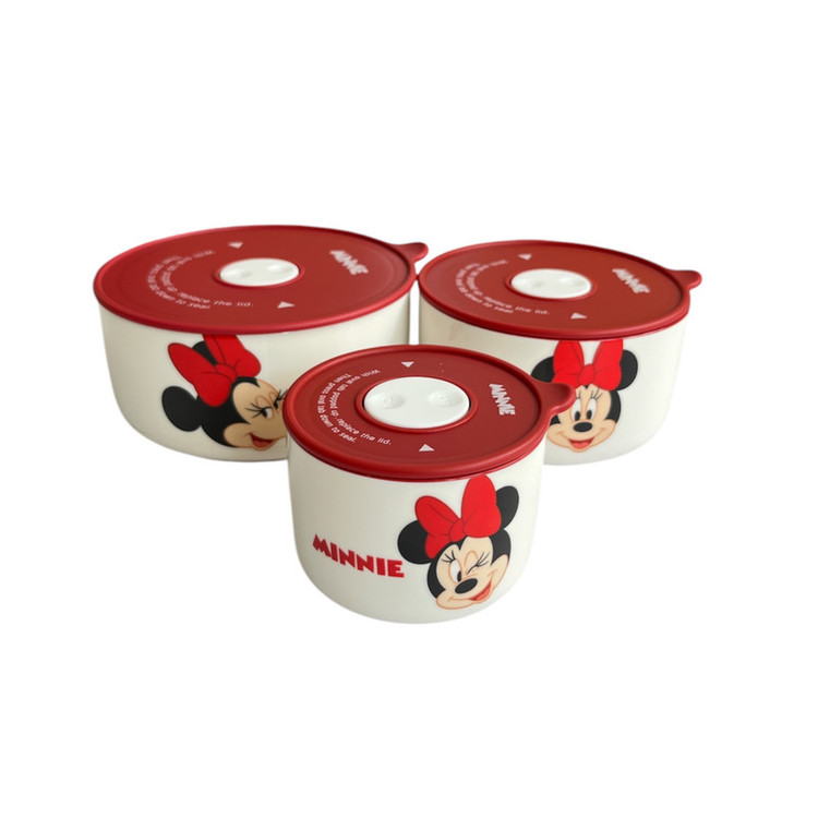ظرف نگهدارنده 3 تایی سرامیکی دیزنی مدل میکی موس در سه سایز بزرگ 15*15*7.5 سایز متوسط 13*13*7 سایز کوچک 9*9*7 دارای واشر پلاستیکی برای جلوگیری از نشت غذا و دریچه برای کنترل ورود و خروج هوا