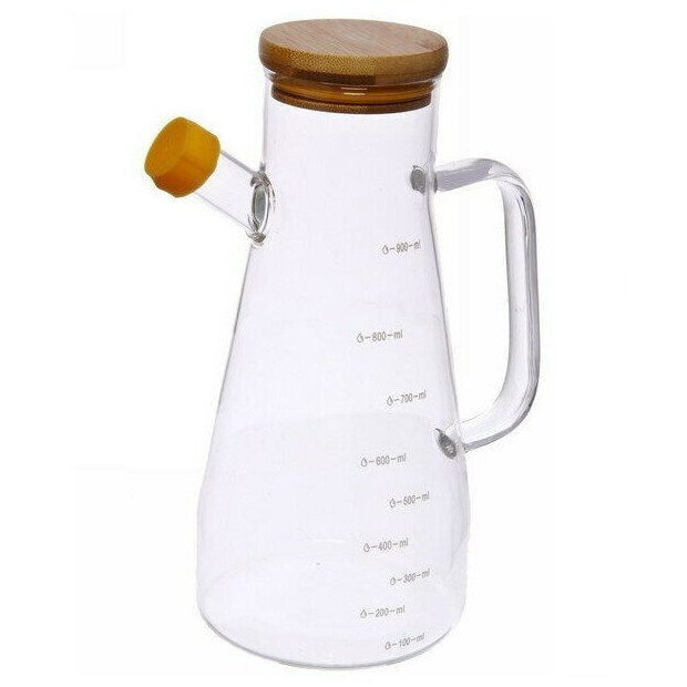 سایر توضیحات: مناسب برای روغن - آبلیمو - سرکه - شیر و هر مدل مایعات خوراکی.جنس بدنه از پیرکس با کیفیت - جنس در از چوب بامبو - حجم 900 میلی لیتر-بدنه ی مدرج-دارای در پوش لاستیکی برای قسمت خروجی
