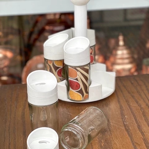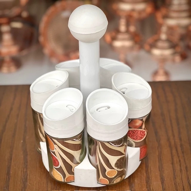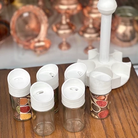 ✅7 پارچه شامل:6 عدد ادویه پاش + 1 عدد استند