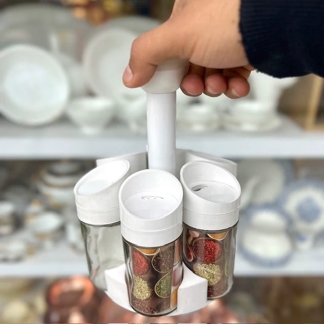 ست ادویه پاش چرخشی 7 پارچه سفید(پس کرایه)