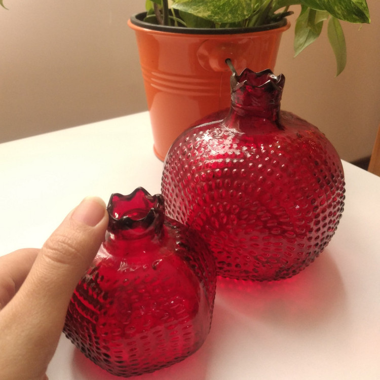این مجموعه شامل سه عدد انار شیشه ای در سه سایز مختلف می باشد. انارهای شیشه ای رنگ شده می باشند و شیشه رنگی نیستند.