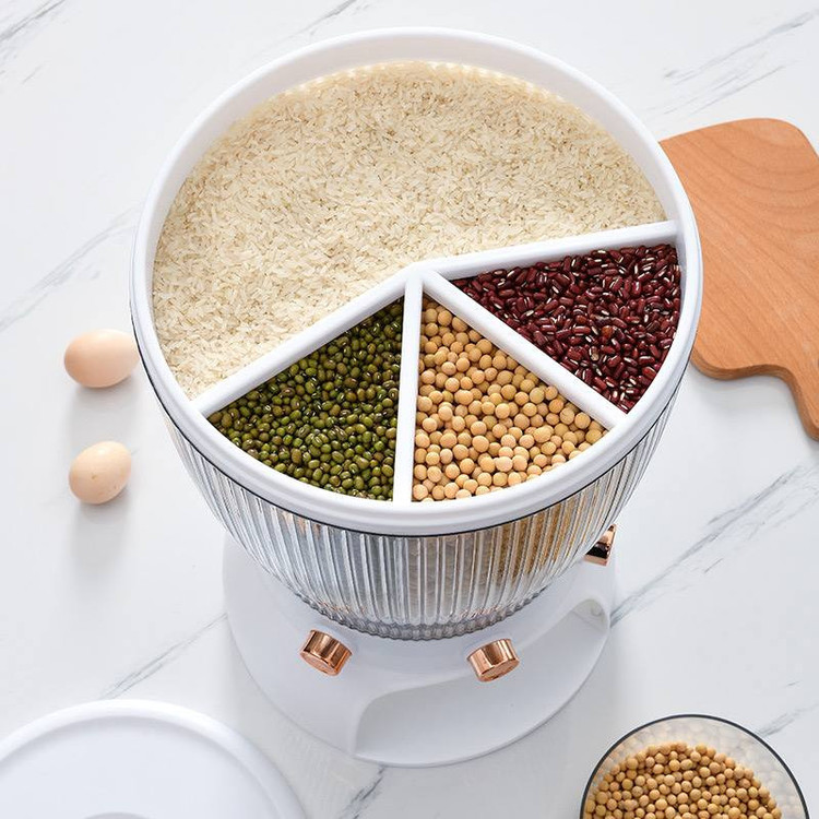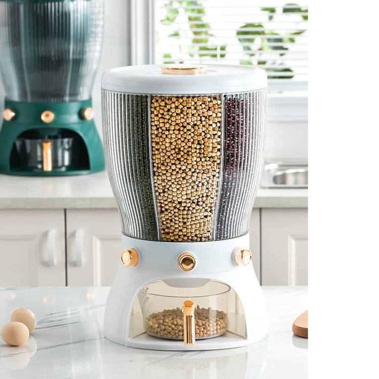 سایر توضیحات: جا حبوباتی شامل 4 محفظه 3تا حبوبات(هرکدام 1.5 کیلو) و یک مخزن برنج(حدودا 5 کیلویی) محصول وارداتی درجه یک دارای محفظه جداگانه برای نگهداری مواد مختلف ابعاد : 27.5 * 27.5 * 44.5 سانتی متر دکمه های جداگانه برای برداشتن آسان از مواد مورد نظر