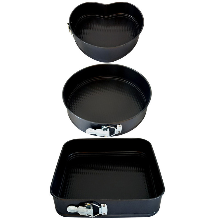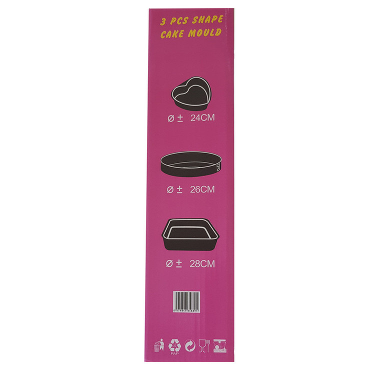 سه طرح مختلف قالب قلب دهانه 24 سانتی متر ارتفاع 6.7 سانتی متر قالب گرد دهانه 26 سانتی متر ارتفاع 6.7 سانتی متر قالب مربع دهانه 28 سانتی متر ارتفاع 6.7 سانتی متر