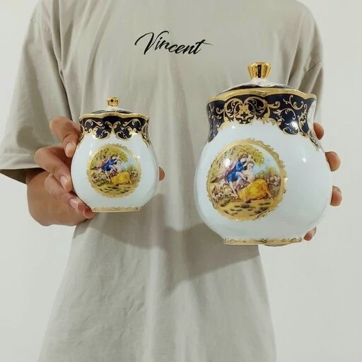 ⭕️سرویس پاسماوری-ادویه 14 پارچه چینی ntc لیلی و مجنون سرمه ای(پس کرایه)