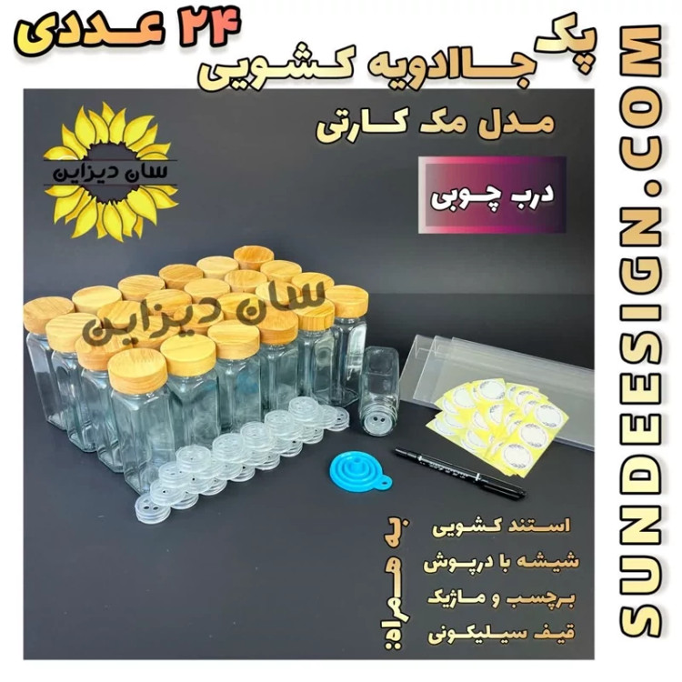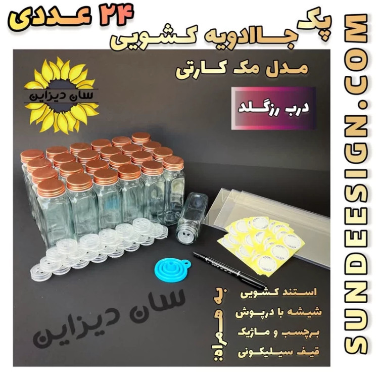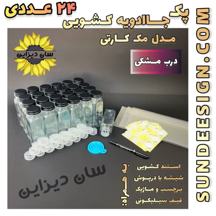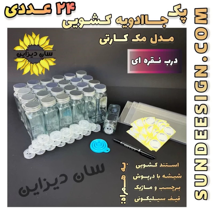پک 24 عددی شیشه ادویه مکارتی 14 سانتی با درب رنگی مدل آمازون