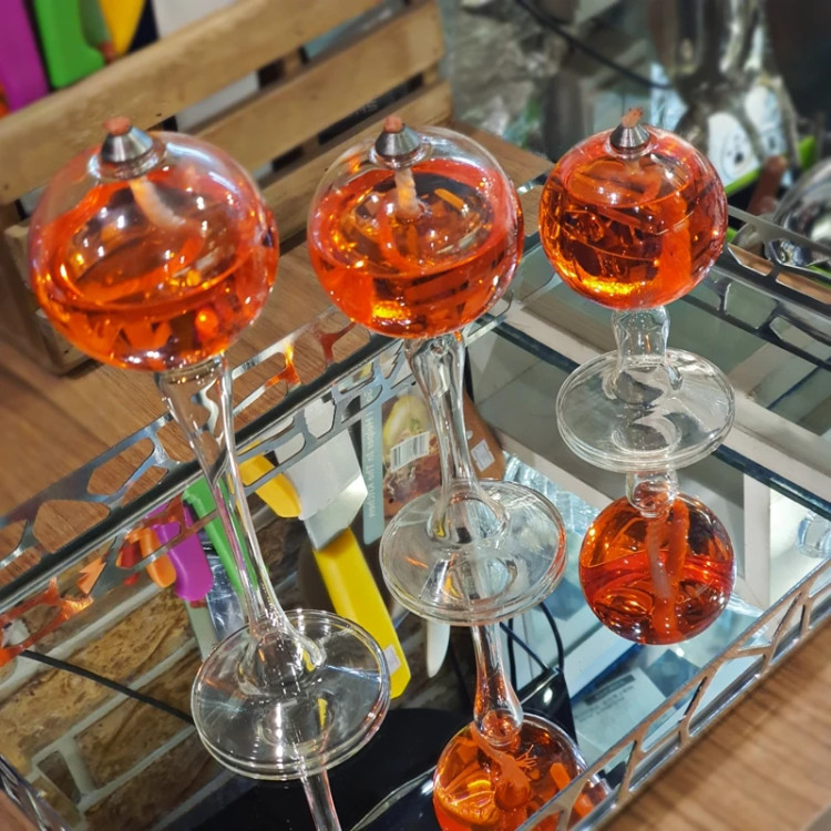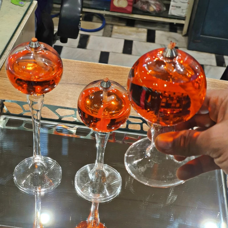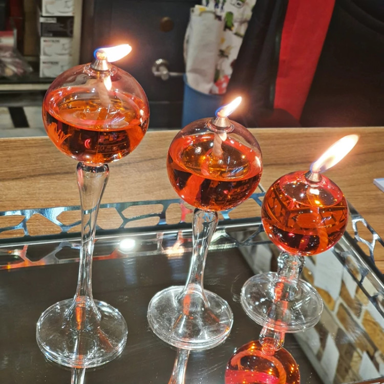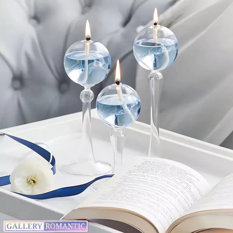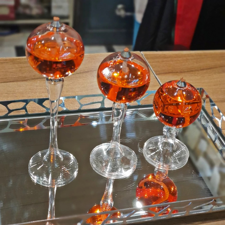 ست جاشمعی حبابی پایه دار در سه سایز بزرگ، متوسط و کوچک ارائه شده است. افراد می توانند همزمان با استفاده از این جاشمعی، هم محیطی آرامبخش و روشنایی ای مطلایم ایجاد کنند و هم بر جذابیت بصری محیط بیفزایند.