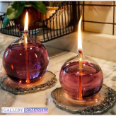 🔻 شمع پیرکس کروی در رنگهای متنوع مانند بی رنگ، آبی، سبز، قرمز، زرشکی، صورتی و بنفش ارائه شده است.