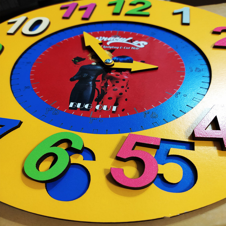 ساعت پازلی با طرح دختر کفشدوزک عقربه ها متحرک اعداد بصورت پازلی چوبی مقاوم و نشکن