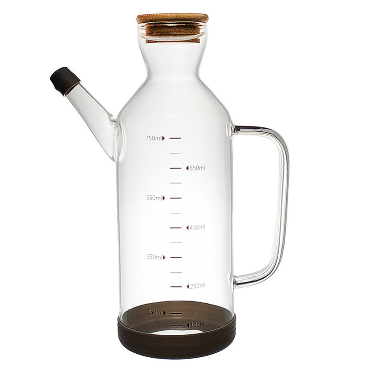 پیرکس مقاوم در برابر حرارت درپوش بامبو با واشر سیلیکونی عایق دارای سرپوش سیلیکونی روی شیر خروجی دارای استند سیلیکونی ظرفیت 750 میلی لیتر