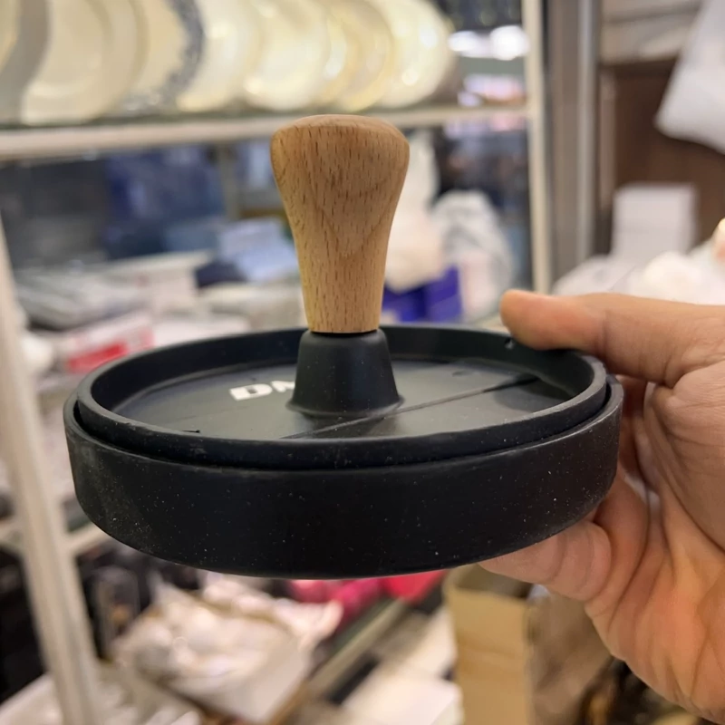 ⭕️همبرگر زن دستی چدنی دسته چوبی dmt بزرگ(پس کرایه)