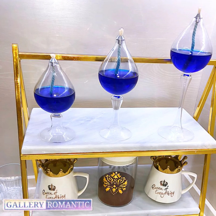 ست جاشمعی اشکی پلاس پایه دار در سه سایز بزرگ، متوسط و کوچک ارائه شده است. افراد می توانند همزمان با استفاده از این جاشمعی، هم محیطی آرامبخش و روشنایی ای مطلایم ایجاد کنند و هم بر جذابیت بصری محیط بیفزایند.