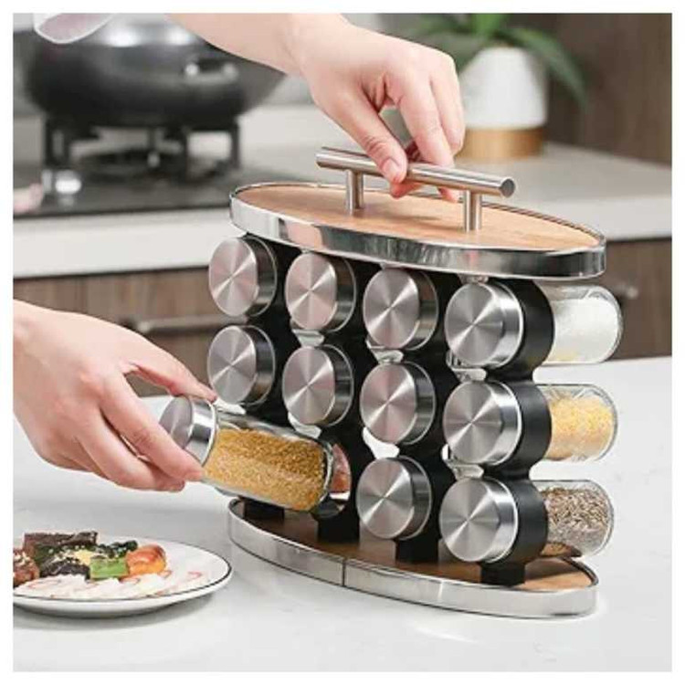 ست جای ادویه 12 پارچه مدل دسته دار کد T01112 به همراه استند