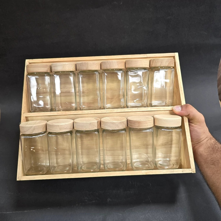 ⭕️ست ادویه 6 تایی-12 تایی بلور با استند ثابت چوب رابر(پس کرایه)