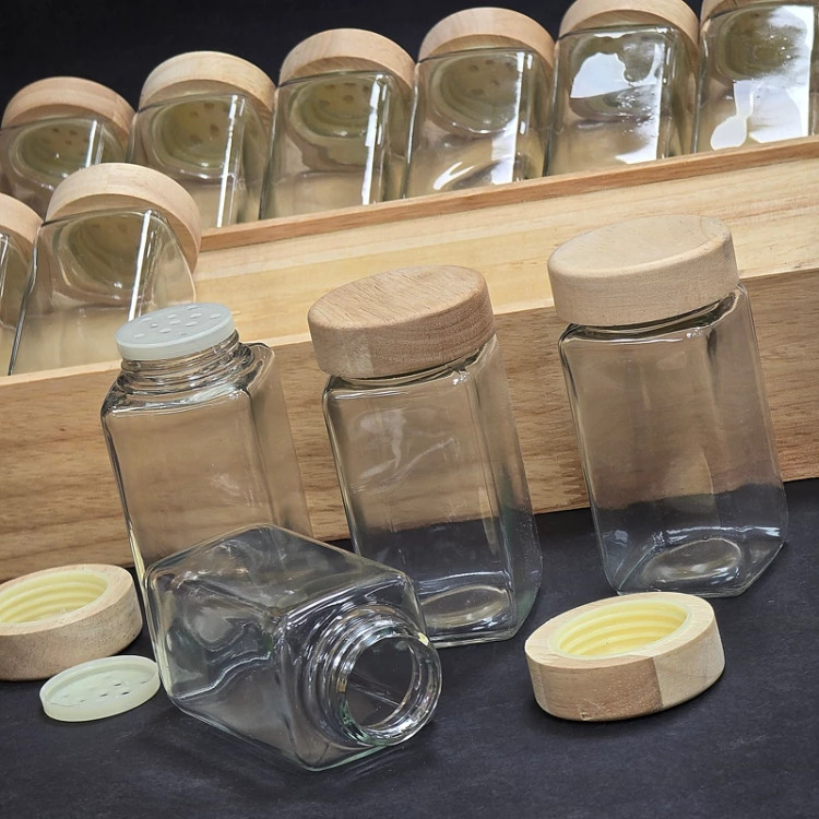 ست ادویه 6 تایی-12 تایی بلور با استند ثابت چوب رابر(پس کرایه)