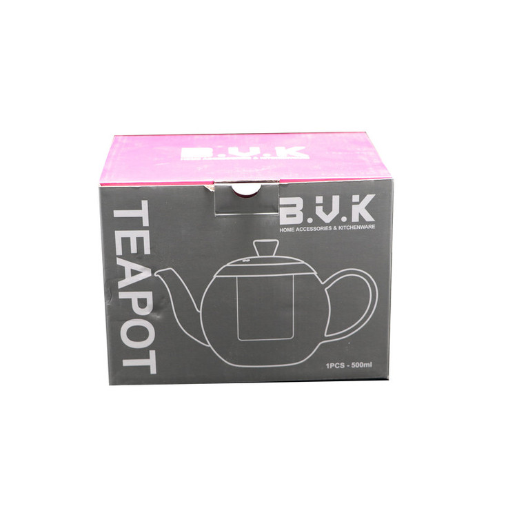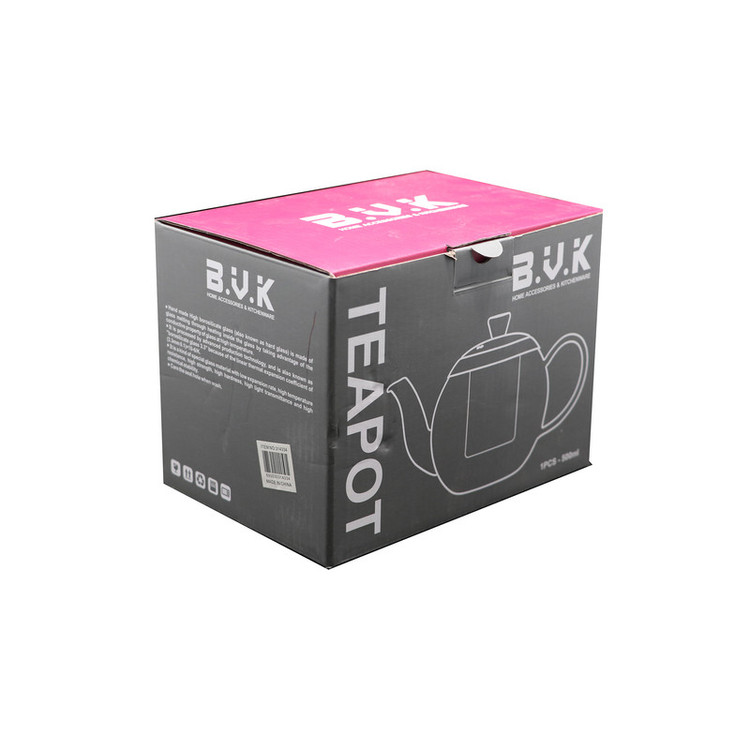 قوری تمام پیرکس 500ml قابل استفاده روی شعله ی مستقیم و اجاق های ماکروویو قابل شستشو در ماشین ظرفشویی طراح برند بی.وی.کی بدون اضافه کردن کادمیوم یا سرب. بسیار زیبا و با دوام پذیرایی مدرن با قوری های بی.وی.کی