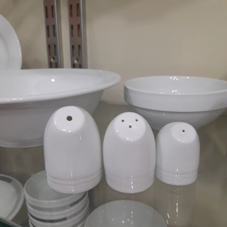 24عدد نمکپاش چینی زرین، سری 49 سفید یا 1 کارتن نمک پاش چینی زرین سری هتلی آرایه سفید، دارای جنس بدنه مقاوم است.