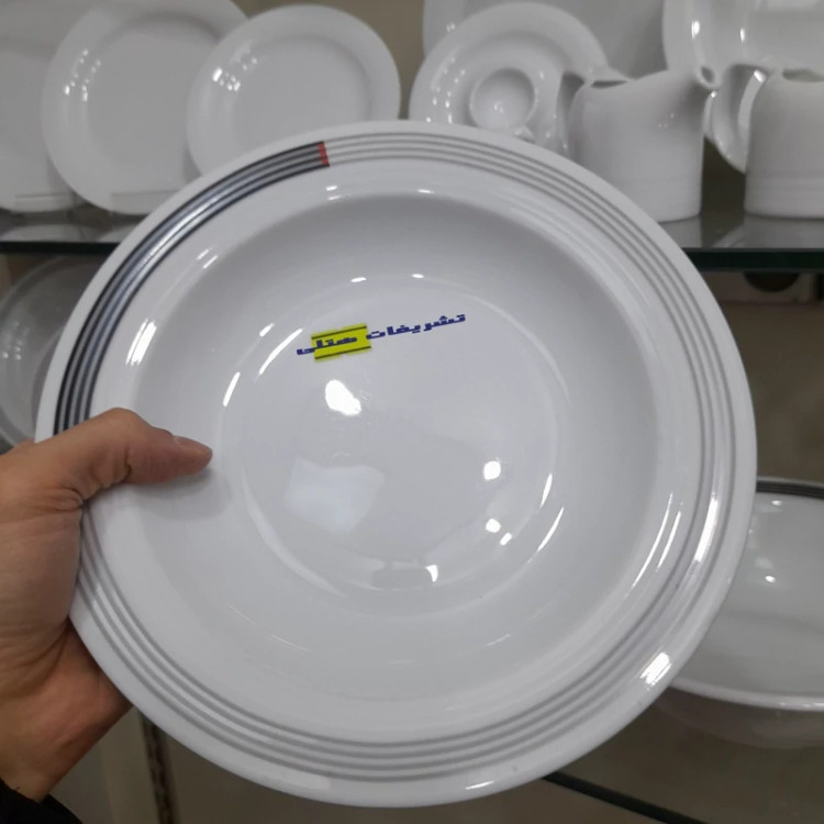 24عدد بشقاب گود 23 چینی زرین سری 49 وگاس یا 1 کارتن خورشت خوری بزرگ چینی زرین سری هتلی آرایه وگاس، دارای جنس بدنه مقاوم است.